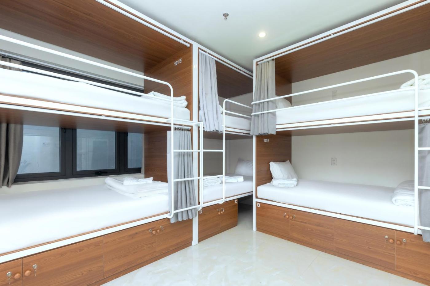 Bed in 6-Bed Mixed Dormitory Room. Guests will have a special experience as the dormitory room features a pool with a view. The dormitory room provides air conditioning, soundproof walls, as well as a shared bathroom featuring a shower and a bidet. The dormitory room is equipped with parquet floors, a sofa, a wardrobe, a safe deposit box as well as city views. The unit offers 6 beds. ;